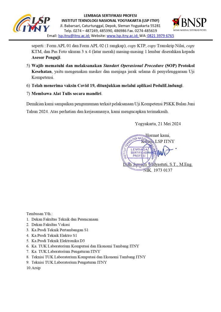 Kepada mahasiswa/i Calon Asesi Uji Kompetensi di Institusi Teknologi Nasional Yogyakarta.